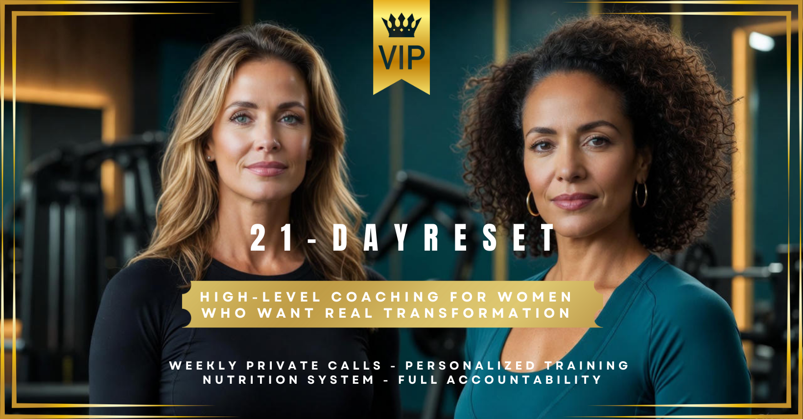 The VIP 21 Day Reset gives you the highest level of support inside the program. You get personalized coaching, weekly 1 on 1 calls, and a custom training program built specifically for your goals and your lifestyle.
